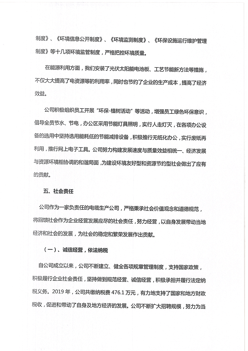 河北華倫線纜有限公司2019年度社會責(zé)任報告