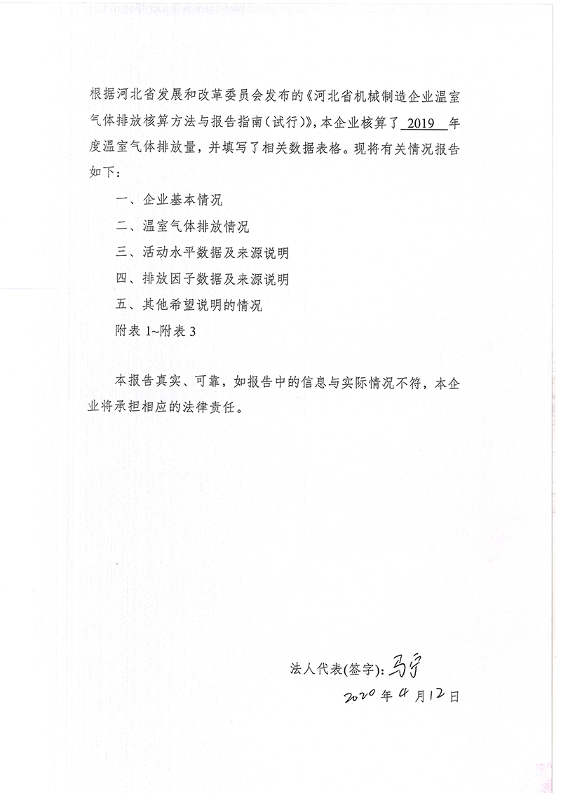 2019年度河北省機械制造企業(yè)溫室氣體排放報告